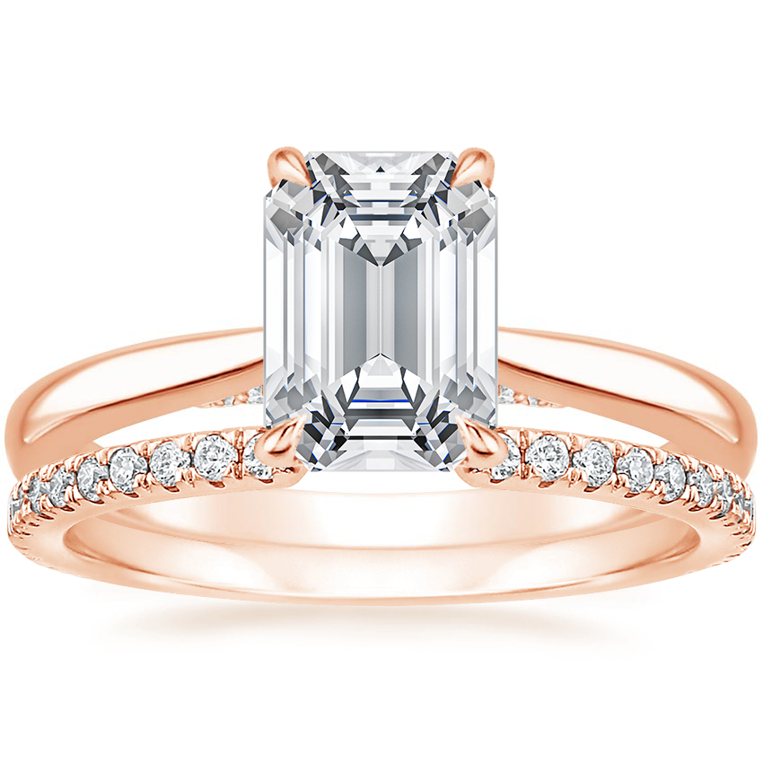 14K Rose Gold Dawn Lab Diamond Ring with Luxe Sia Diamond Open Ring (1/5 ct. tw.) with 0.75 Carat Emerald Lab Grown Diamond