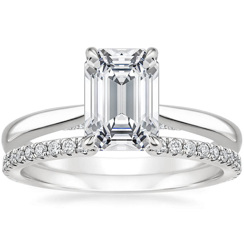 18K White Gold Dawn Lab Diamond Ring with Luxe Sia Diamond Open Ring (1/5 ct. tw.) with 0.75 Carat Emerald Lab Grown Diamond