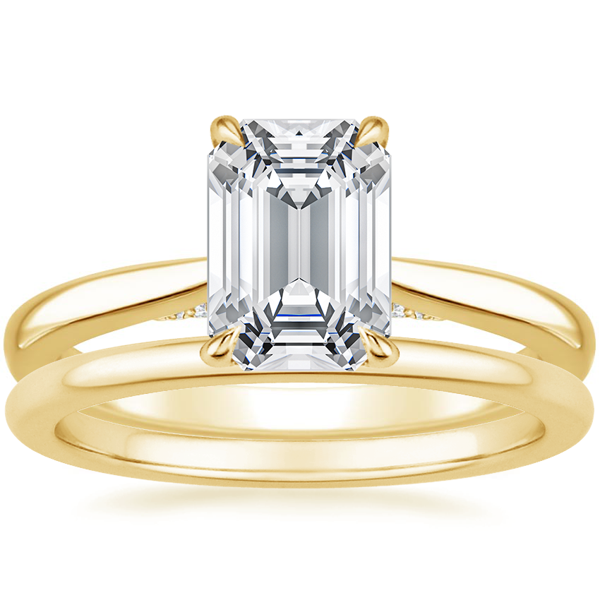 18K Yellow Gold Dawn Diamond Ring with Petite Comfort Fit Wedding Ring