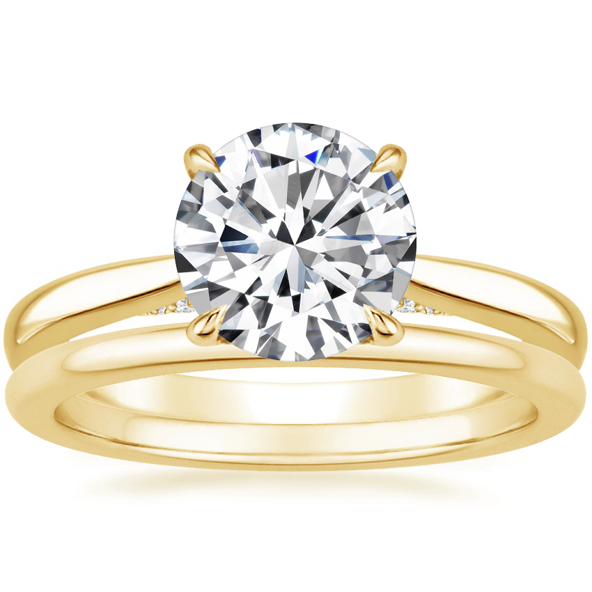 18K Yellow Gold Dawn Lab Diamond Ring with Petite Comfort Fit Wedding Ring with 1.0 Carat Round Lab Grown Diamond