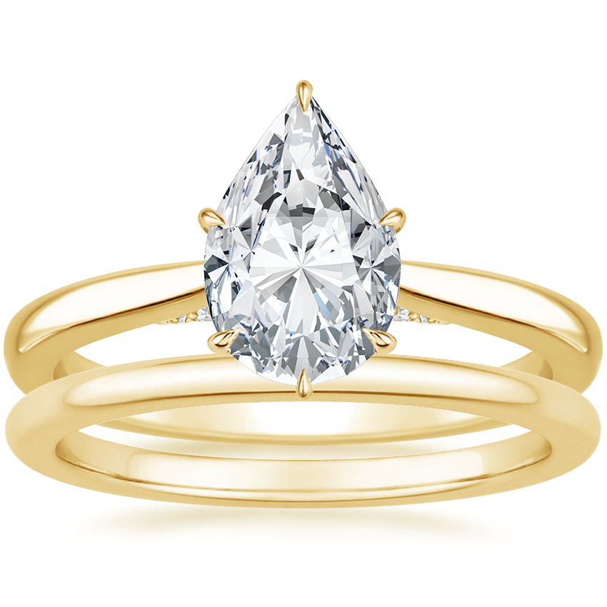 18K Yellow Gold Dawn Diamond Ring with Petite Comfort Fit Wedding Ring