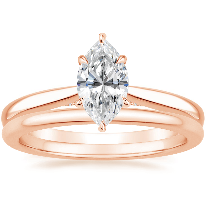 14K Rose Gold Dawn Lab Diamond Ring with Petite Comfort Fit Wedding Ring with 0.33 Carat Marquise Lab Grown Diamond