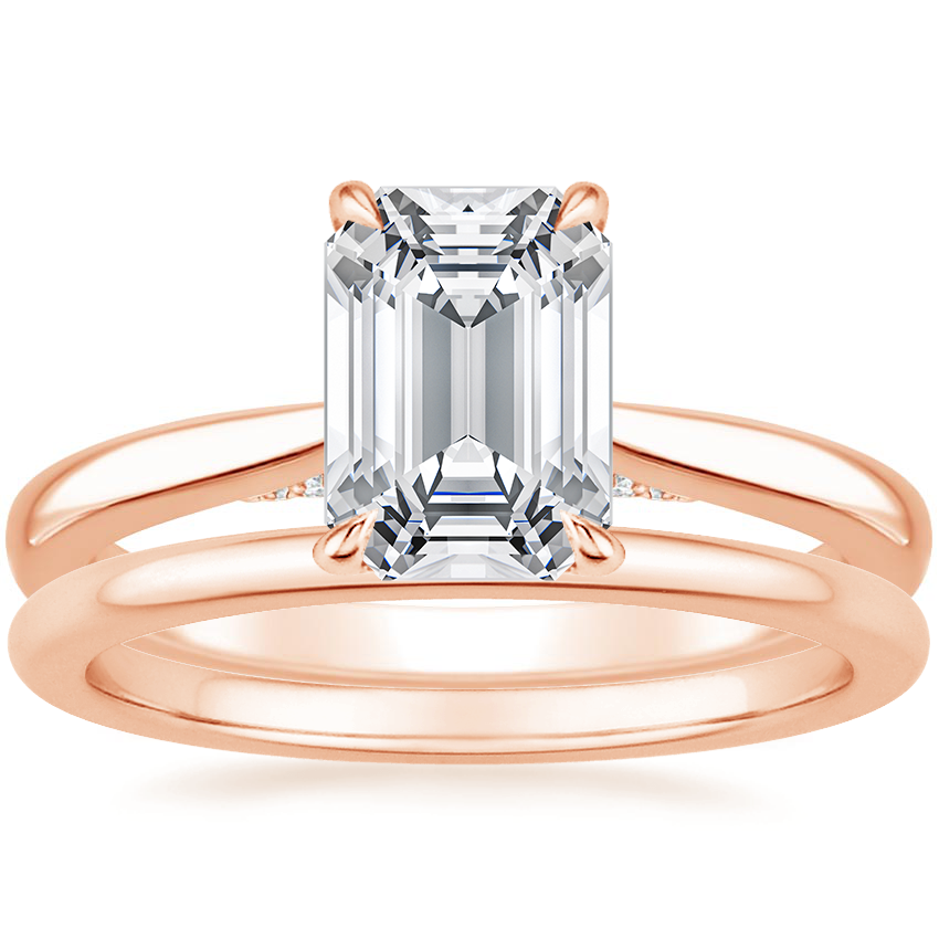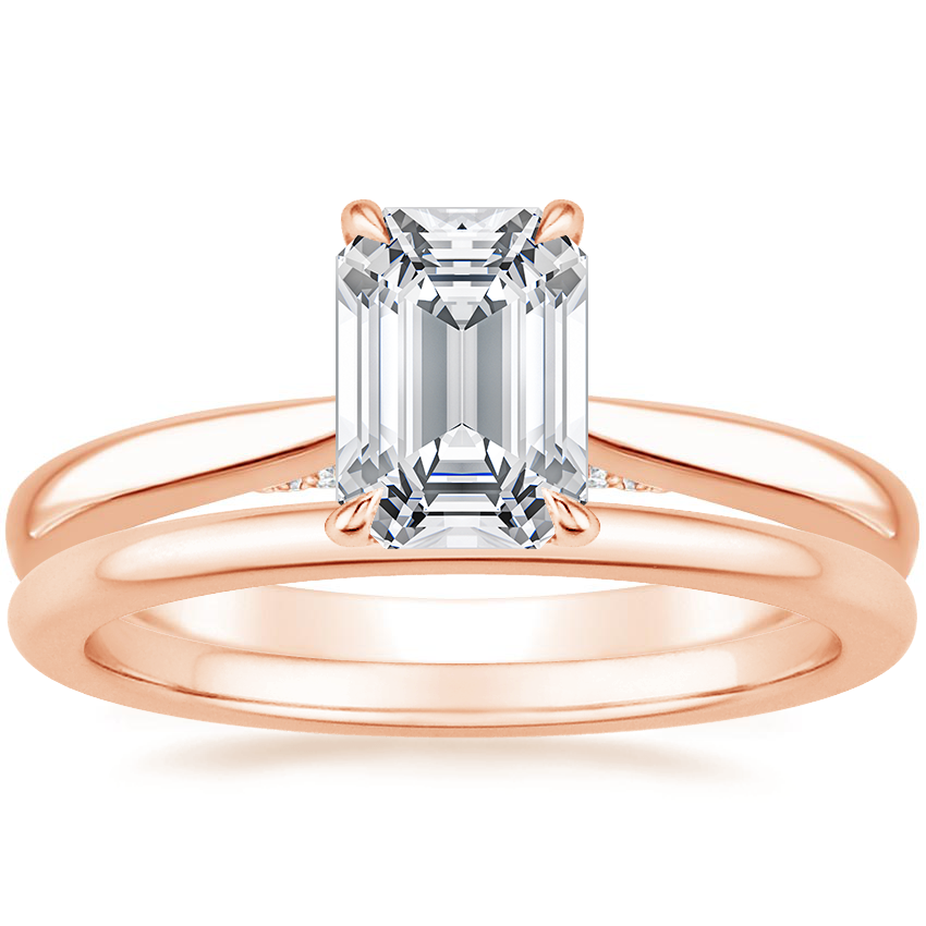 Dawn Diamond Ring with Petite Comfort Fit Wedding Ring in 14K Rose Gold