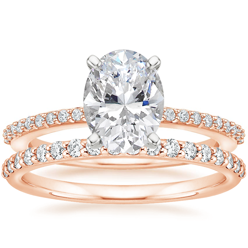 14K Rose Gold Delicate Shared Prong Diamond Ring with Petite Shared Prong Diamond Ring (1/4 ct. tw.)