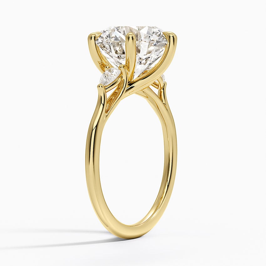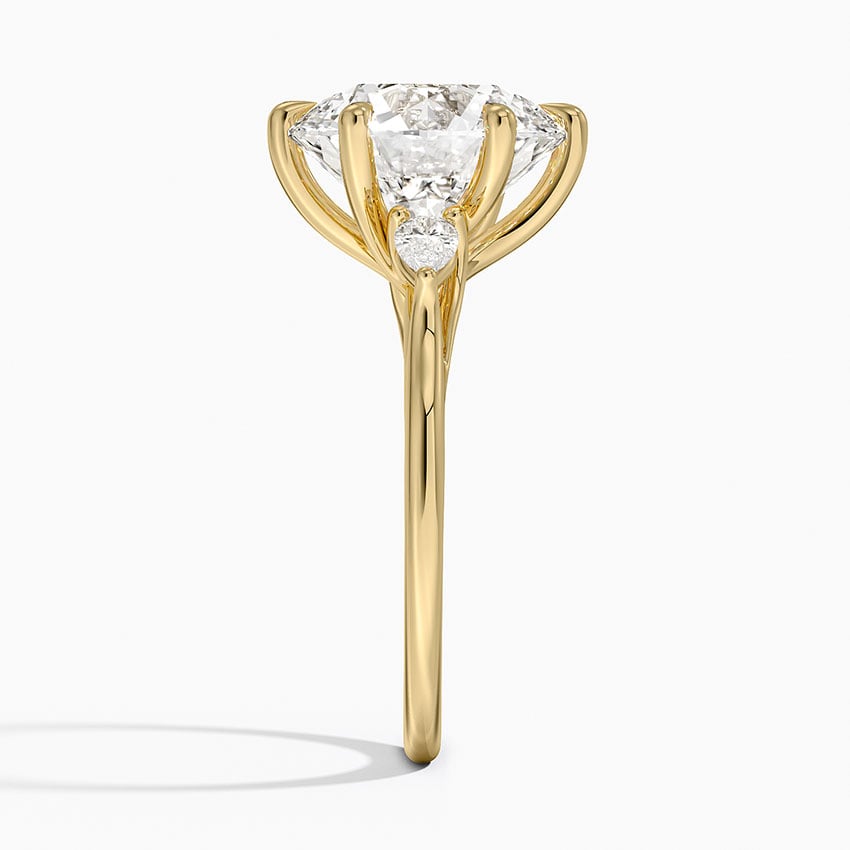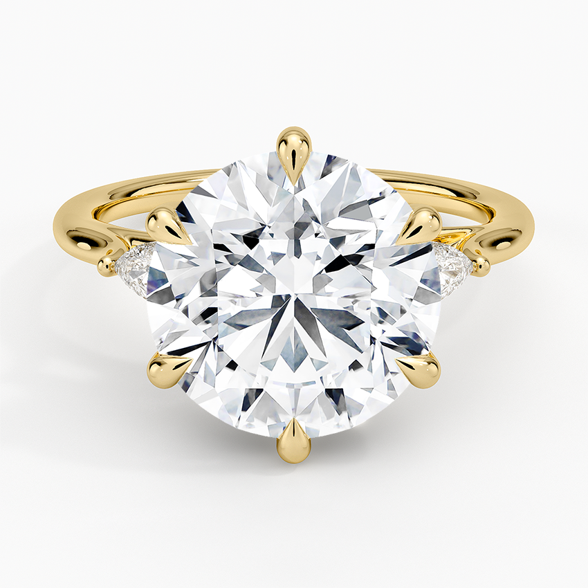 18K Yellow Gold Delilah Three Stone Pear Lab Diamond Ring (1/5 ct. tw.) with 5.02 Carat Round Lab Grown Diamond