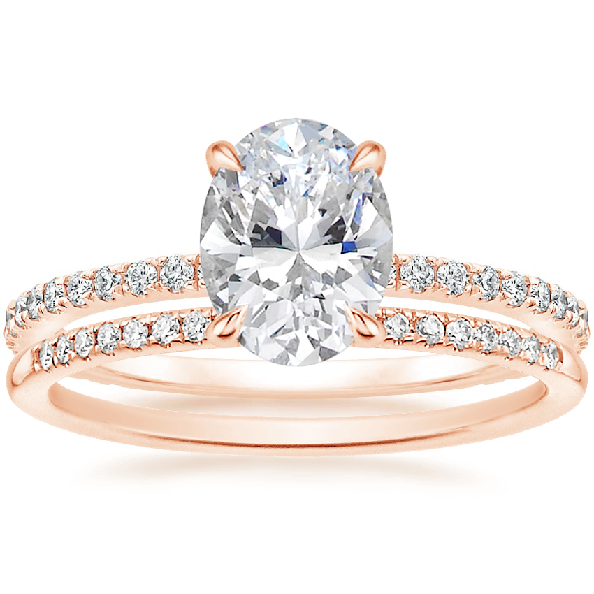 14K Rose Gold Demi Diamond Ring (1/3 ct. tw.) with Whisper Diamond Ring (1/10 ct. tw.) with 2.01 Carat Oval Diamond