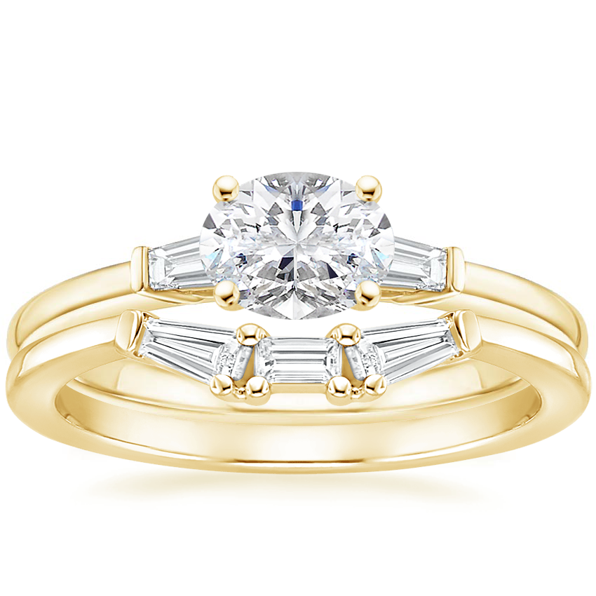 18K Yellow Gold East West Tapered Baguette Diamond Ring with Tapered Baguette Diamond Ring