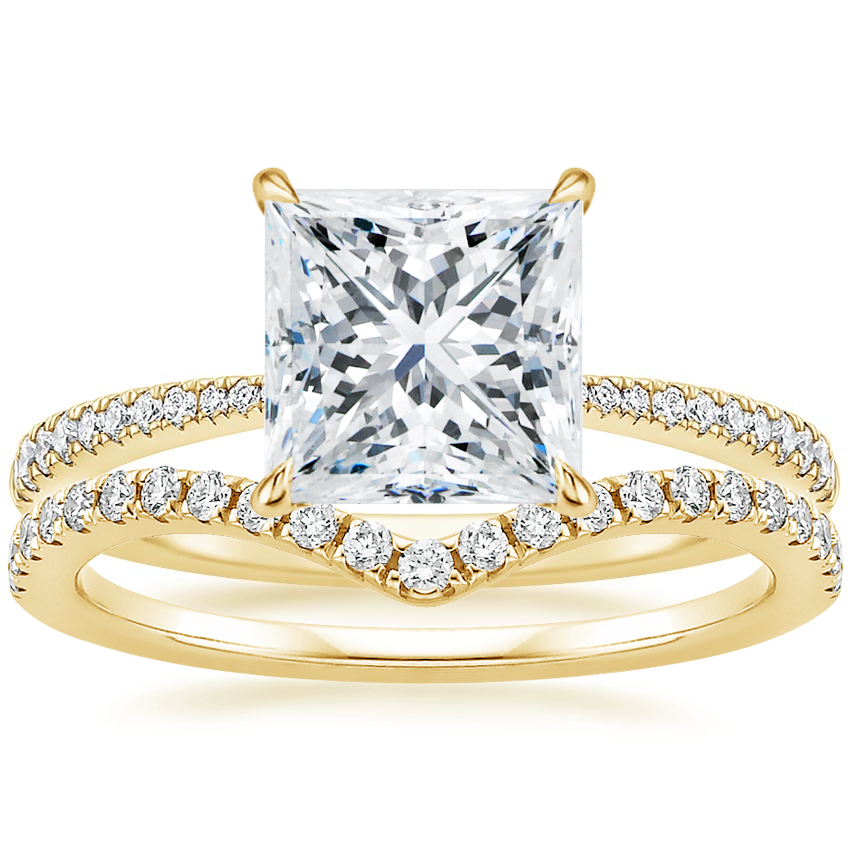 My fiancé proposed to me with this yellow gold Elena ring, and it's so perfect! The band is so dainty and delicate. He added a 2.1 carat lab diamond in oval shape and I couldn't be more thrilled. I get SO many compliments even from the Baristas at Starbucks when I get my coffee.