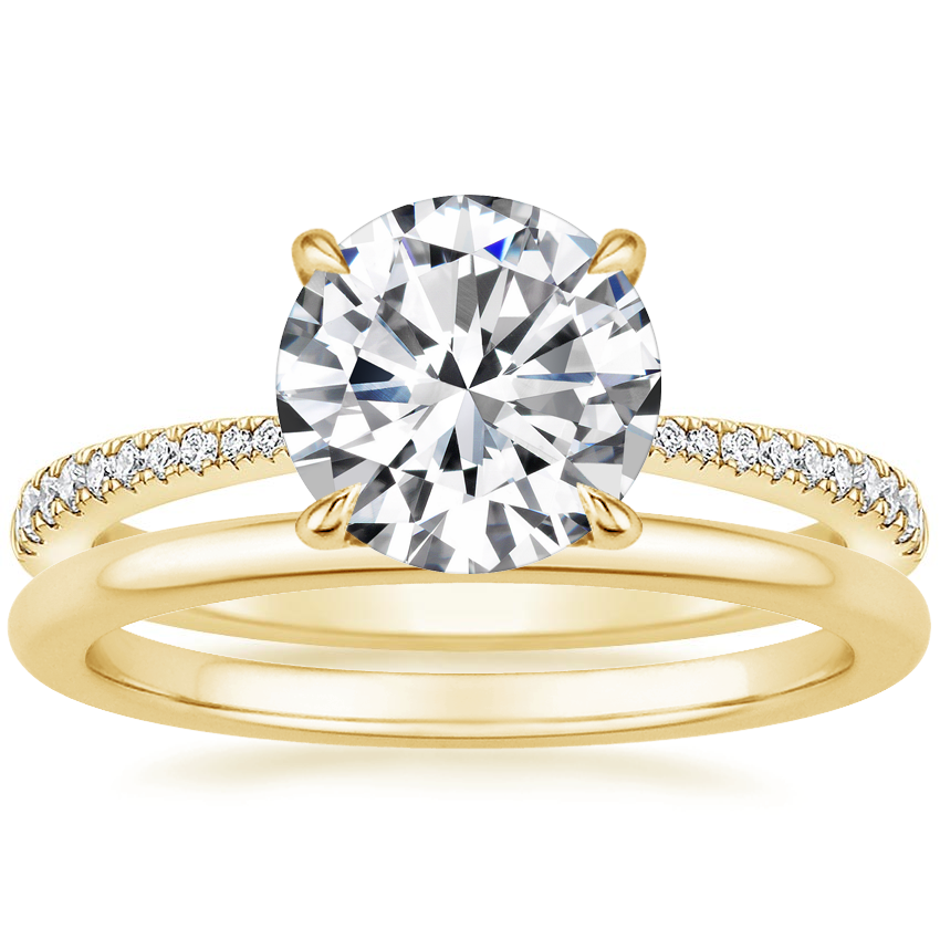 18K Yellow Gold Elena Diamond Ring with Petite Comfort Fit Wedding Ring