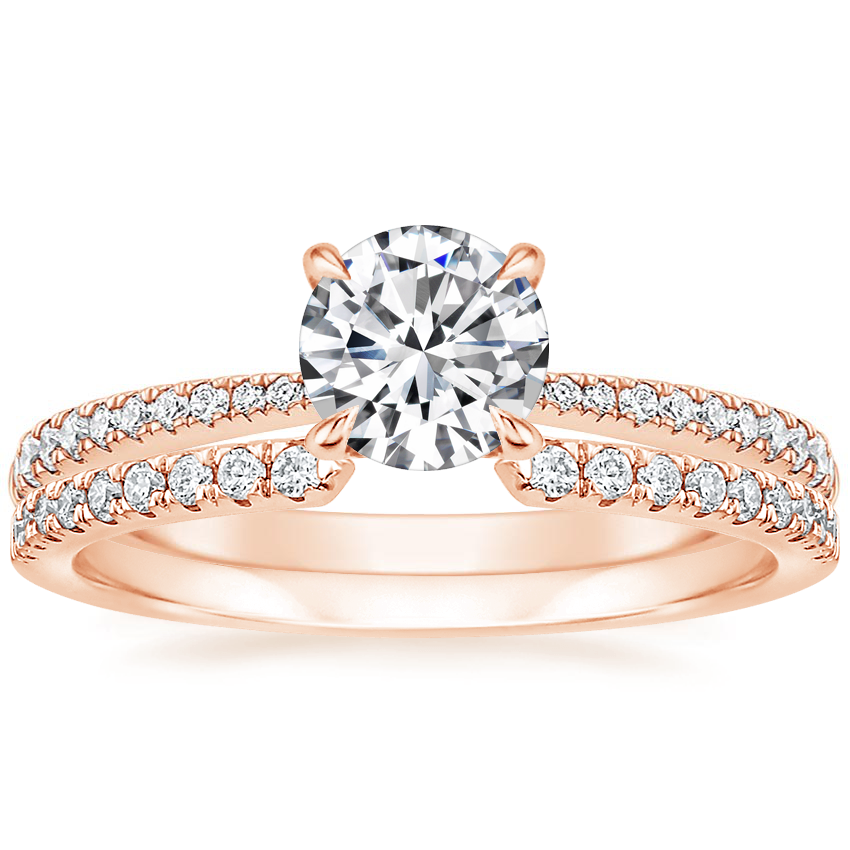 14K Rose Gold Elena Diamond Ring with Sia Diamond Open Ring (1/8 ct. tw.)