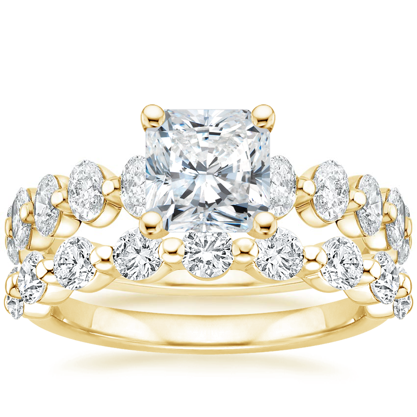 18K Yellow Gold Ellipse Oval Diamond Ring (3/4 ct. tw.) with Monaco Diamond Ring (3/4 ct. tw.)