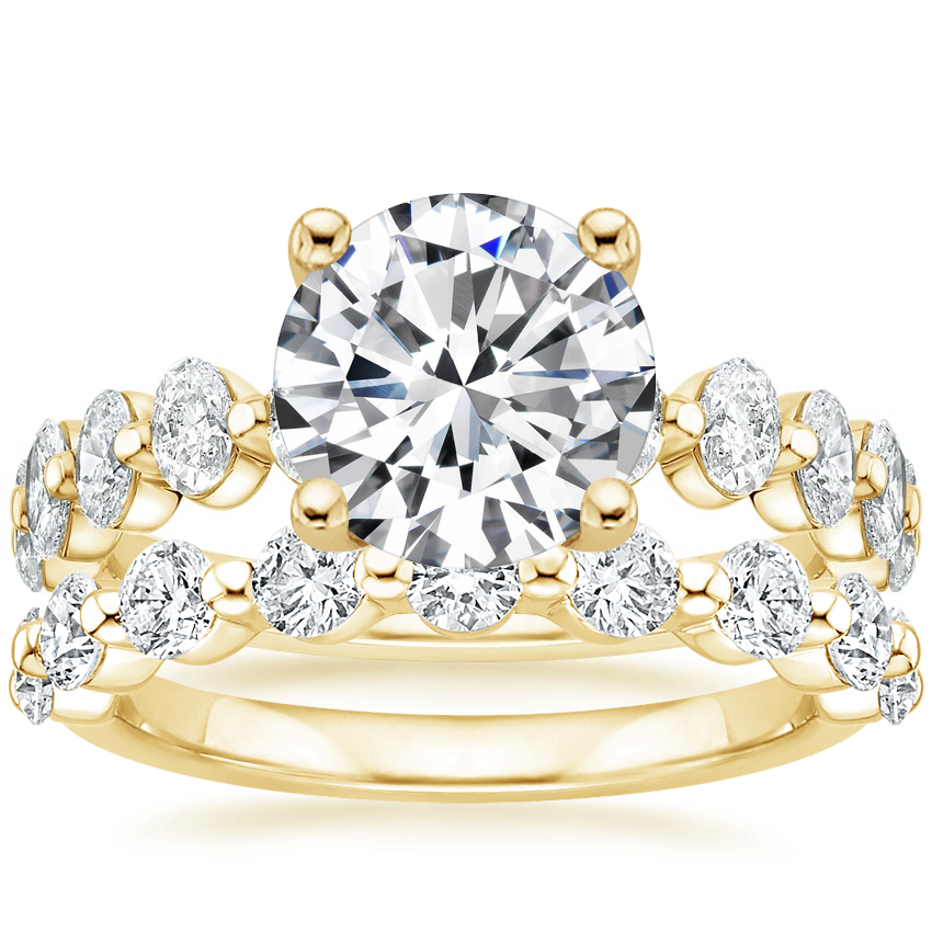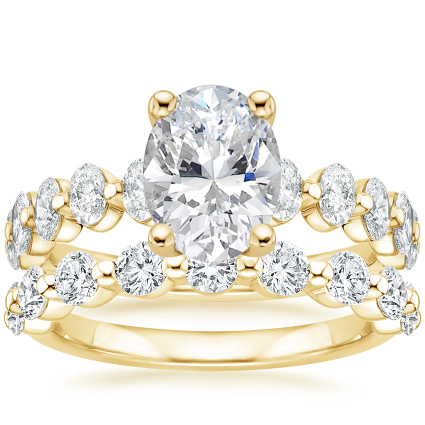 18K Yellow Gold Ellipse Oval Diamond Ring (3/4 ct. tw.) with Monaco Diamond Ring (3/4 ct. tw.)