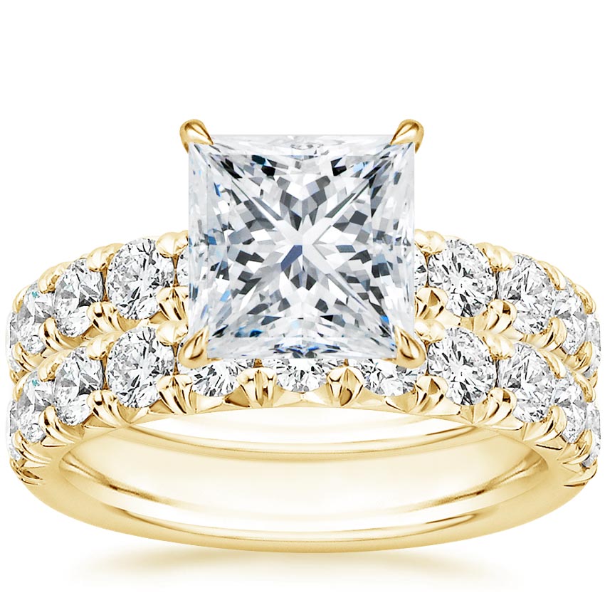 18K Yellow Gold Ellora Lab Diamond Bridal Set with 1.24 Carat Princess Lab Grown Diamond