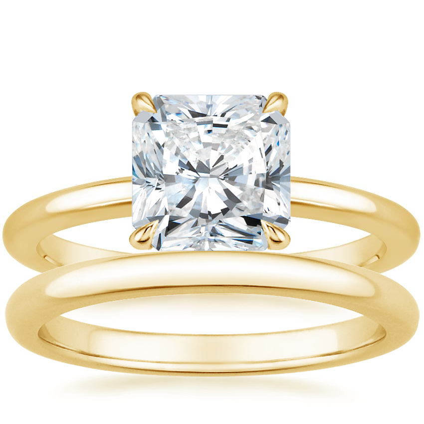 18K Yellow Gold Elodie Ring with 2mm Comfort Fit Wedding Ring with 4.0 Carat Radiant Lab Grown Diamond