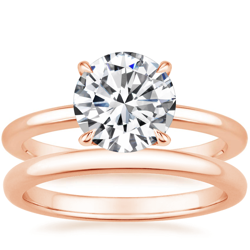 14K Rose Gold Elodie Ring with 2mm Comfort Fit Wedding Ring with 1.21 Carat Round Diamond