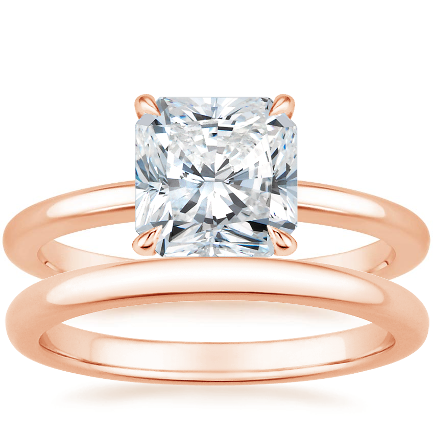14K Rose Gold Elodie Ring with 2mm Comfort Fit Wedding Ring with 4.0 Carat Radiant Lab Grown Diamond