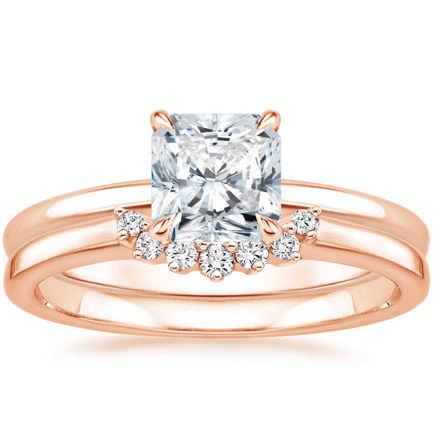 14K Rose Gold Elodie Ring with Crescent Diamond Ring with 4.0 Carat Radiant Lab Grown Diamond