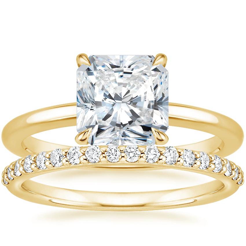 18K Yellow Gold Elodie Ring with Petite Shared Prong Diamond Ring (1/4 ct. tw.) with 4.0 Carat Radiant Lab Grown Diamond