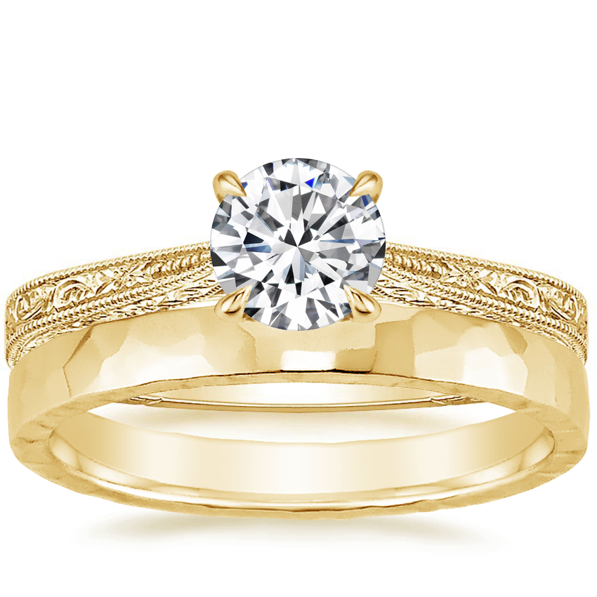 18K Yellow Gold Elsie Ring with 2.5mm Hammered Quattro Wedding Ring