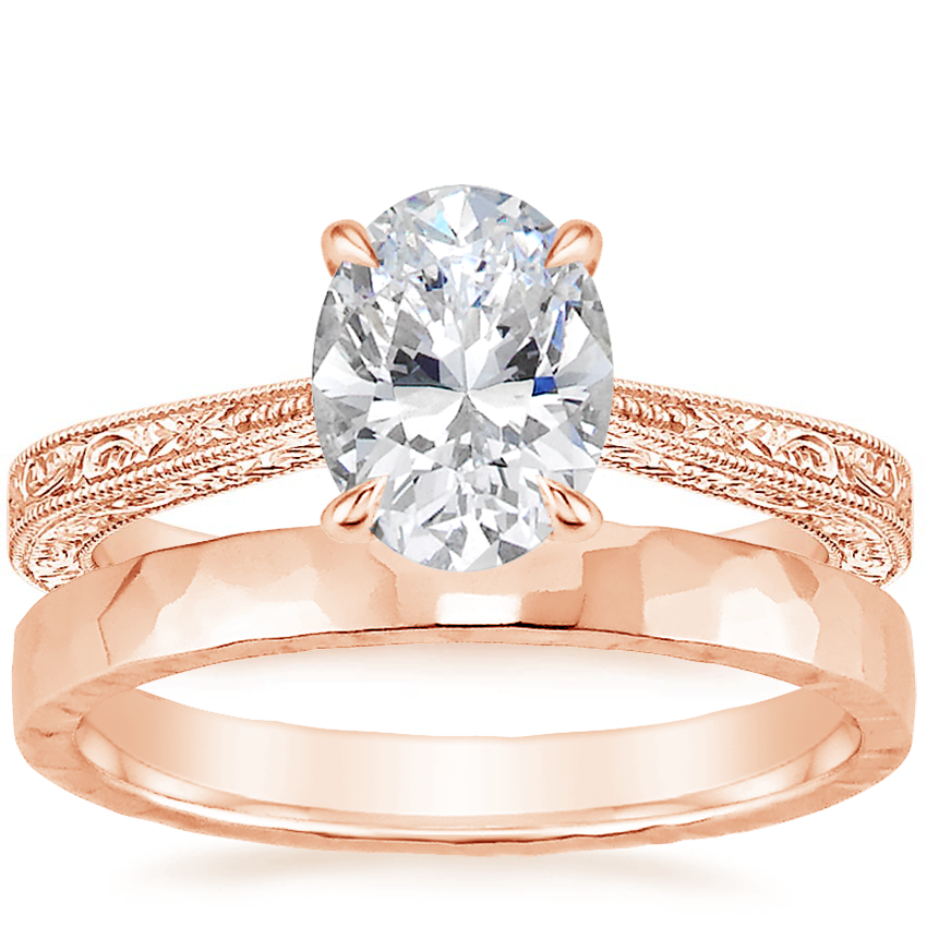 Elsie Ring with 2.5mm Hammered Quattro Wedding Ring in 14K Rose Gold