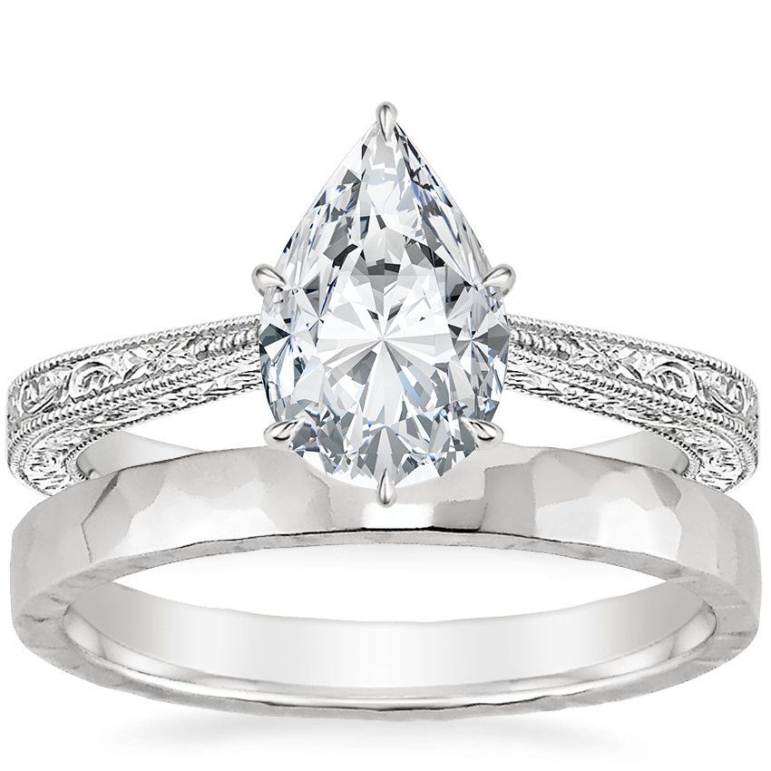 18K White Gold Elsie Ring with 2.5mm Hammered Quattro Wedding Ring