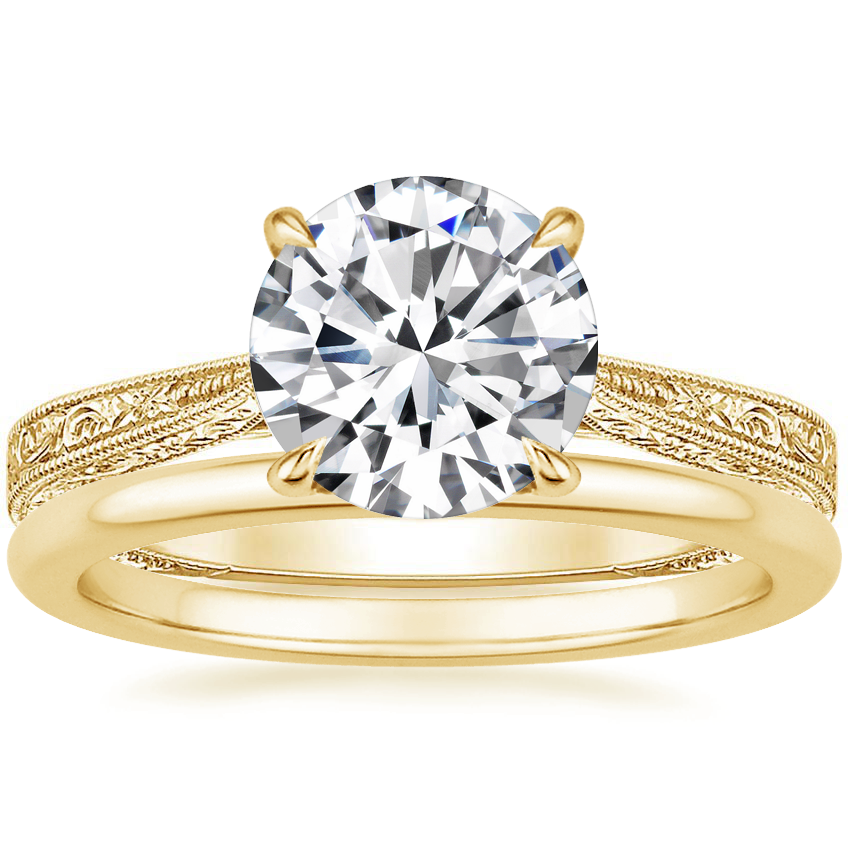 18K Yellow Gold Elsie Ring with Petite Comfort Fit Wedding Ring