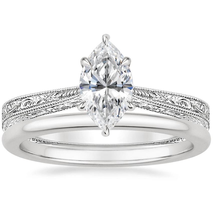 Platinum Elsie Ring with Petite Comfort Fit Wedding Ring with 0.75 Carat Marquise Lab Grown Diamond