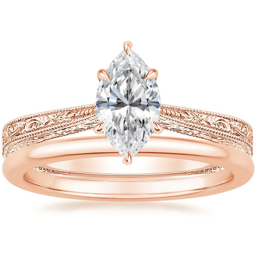 14K Rose Gold Elsie Ring with Petite Comfort Fit Wedding Ring with 0.75 Carat Marquise Lab Grown Diamond