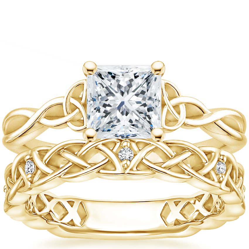 The entwined lovers knot is a Celtic symbol of everlasting devotion with weaving strands that wrap seemingly endlessly across this meaningful bridal set. ... Read More