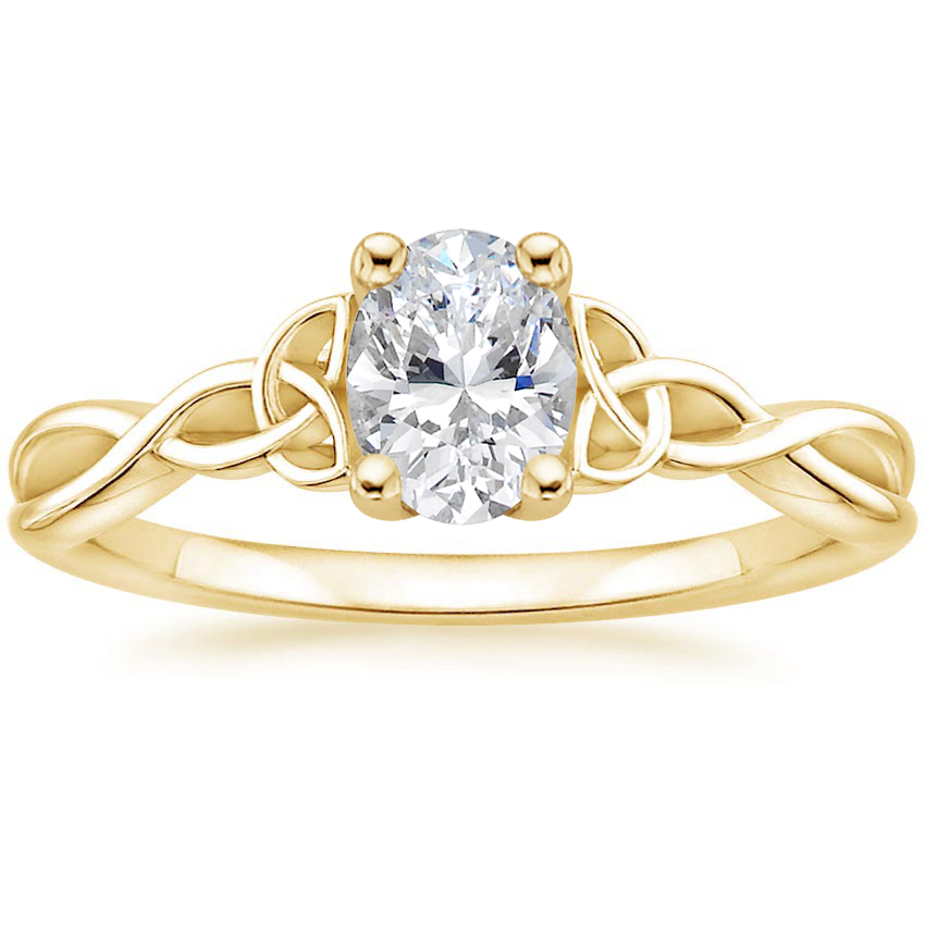 18K Yellow Gold Entwined Celtic Love Knot Ring with Celtic Knot Diamond Ring with 0.5 Carat Oval Diamond