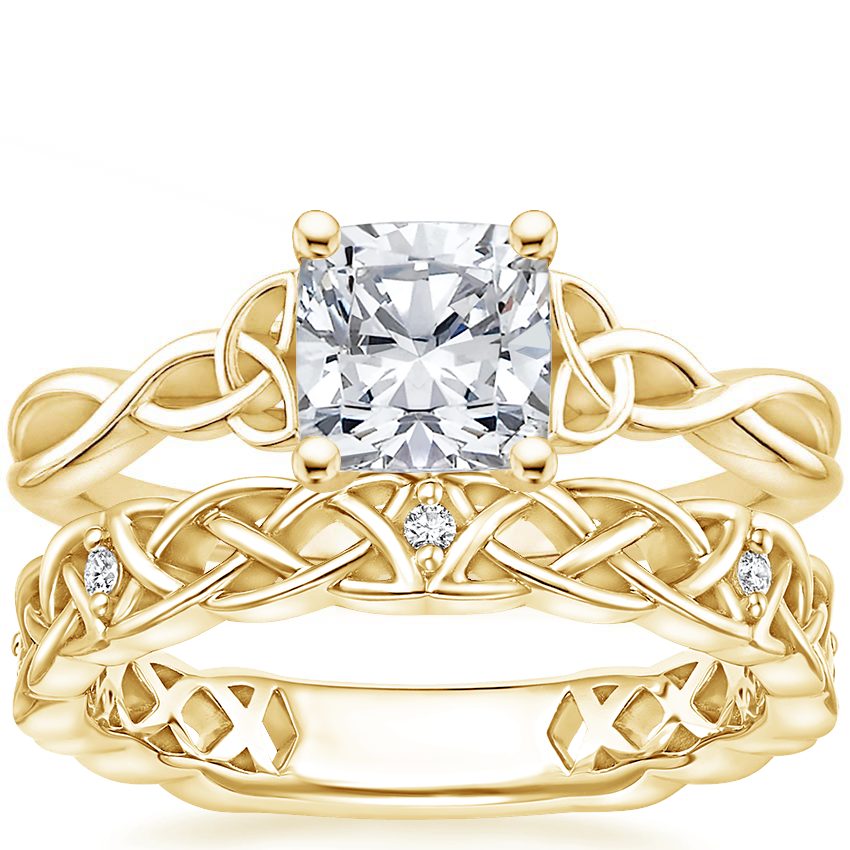 The entwined lovers knot is a Celtic symbol of everlasting devotion with weaving strands that wrap seemingly endlessly across this meaningful bridal set. ... Read More