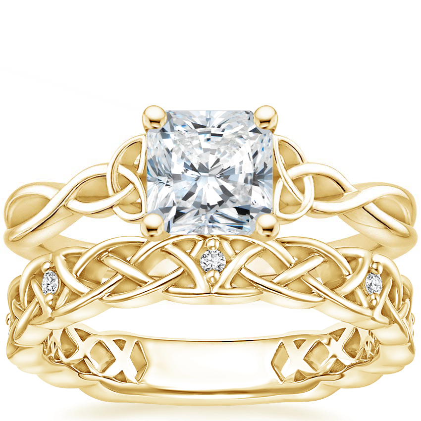 Entwined Celtic Love Knot Ring with Celtic Knot Diamond Ring in 18K Yellow Gold