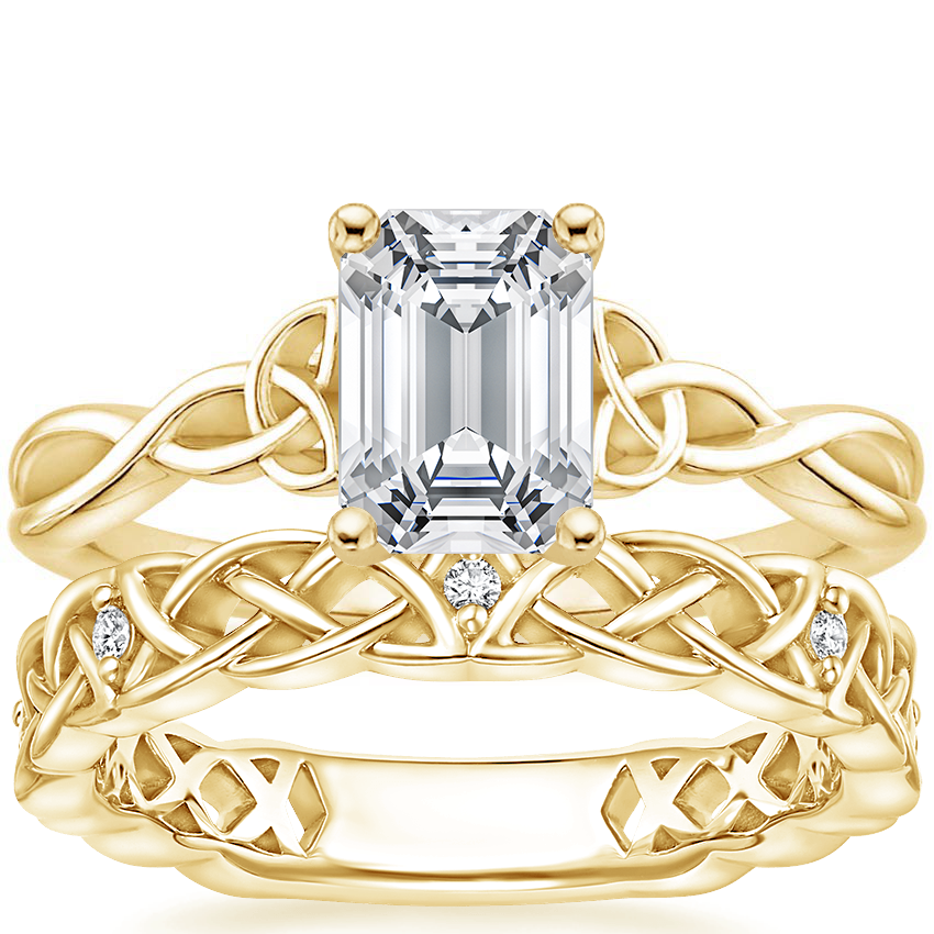 The entwined lovers knot is a Celtic symbol of everlasting devotion with weaving strands that wrap seemingly endlessly across this meaningful bridal set. ... Read More