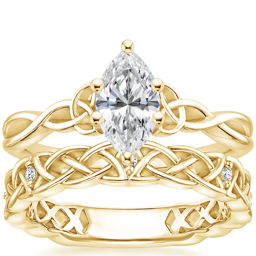 18K Yellow Gold Entwined Celtic Love Knot Ring with Celtic Knot Diamond Ring