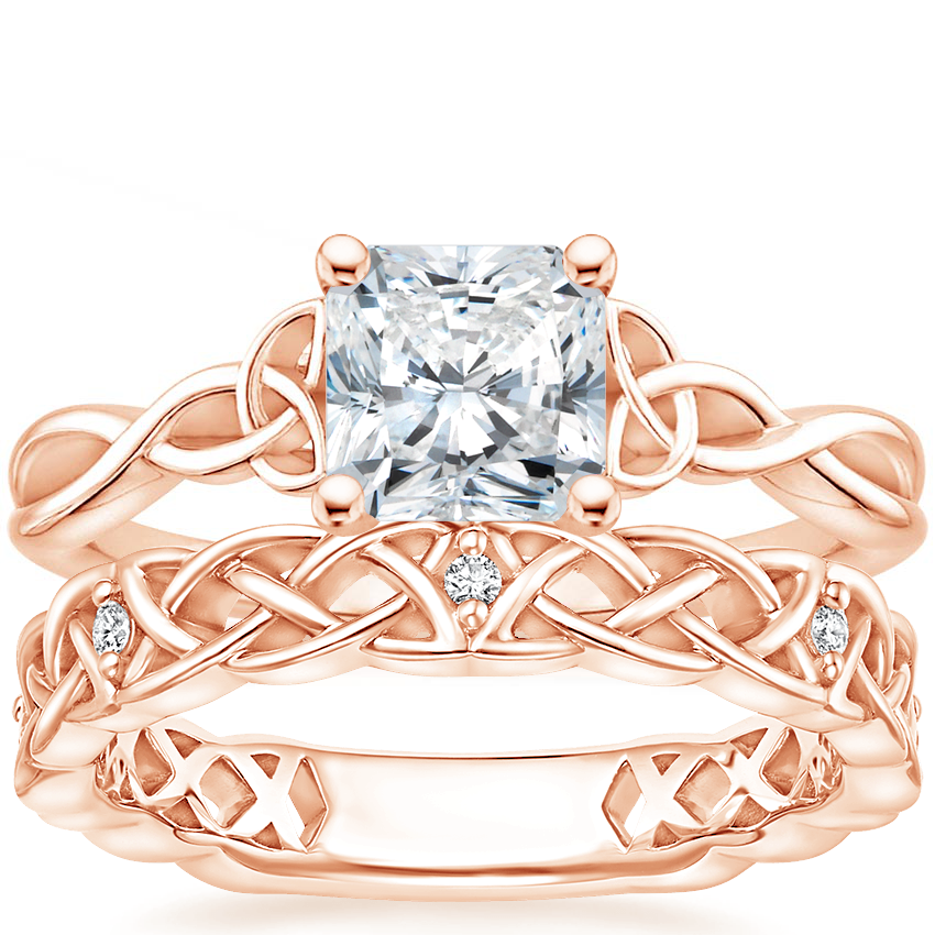 14K Rose Gold Entwined Celtic Love Knot Ring with Celtic Knot Diamond Ring