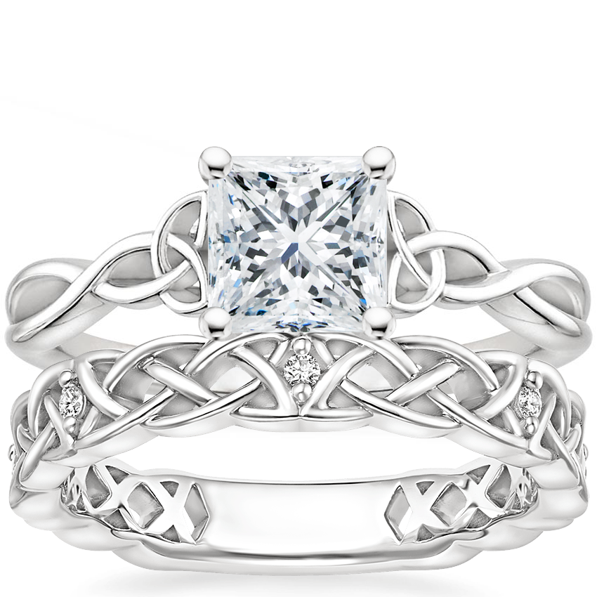The entwined lovers knot is a Celtic symbol of everlasting devotion with weaving strands that wrap seemingly endlessly across this meaningful bridal set. ... Read More