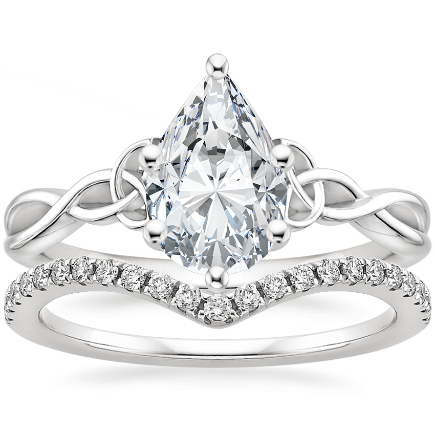18K White Gold Entwined Celtic Love Knot Ring with Flair Diamond Ring (1/6 ct. tw.)