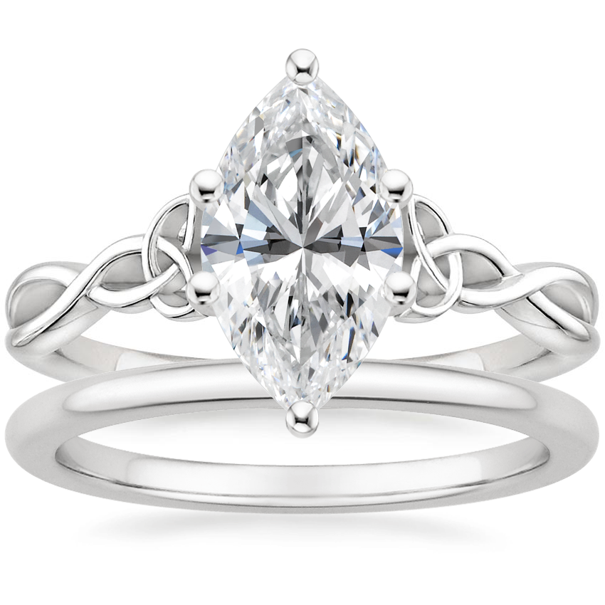 Platinum Entwined Celtic Love Knot Ring with Petite Comfort Fit Wedding Ring