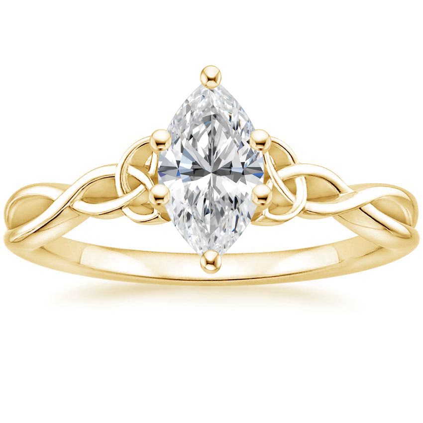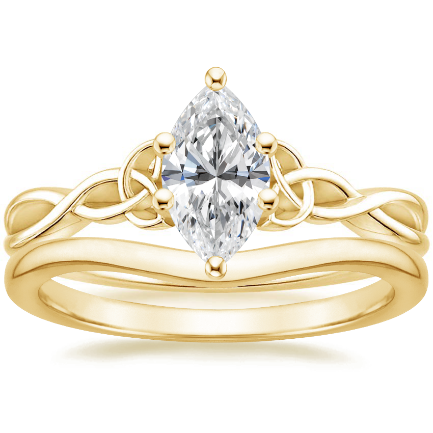 18K Yellow Gold Entwined Celtic Love Knot Ring with Petite Curved Wedding Ring with 0.75 Carat Marquise Lab Grown Diamond