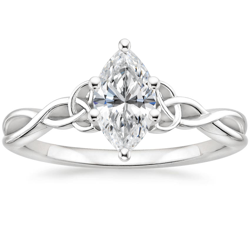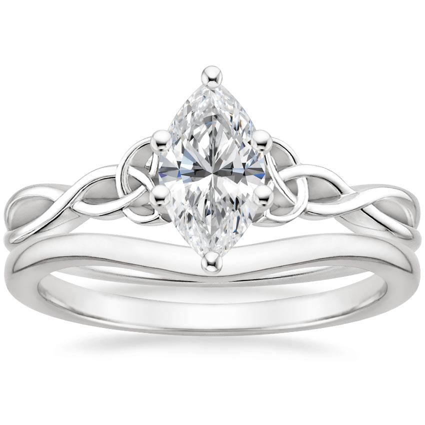 18K White Gold Entwined Celtic Love Knot Ring with Petite Curved Wedding Ring with 0.75 Carat Marquise Lab Grown Diamond