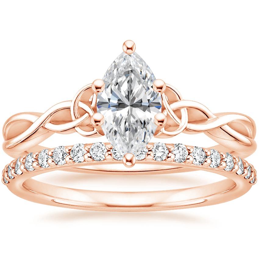 14K Rose Gold Entwined Celtic Love Knot Ring with Petite Shared Prong Diamond Ring (1/4 ct. tw.)