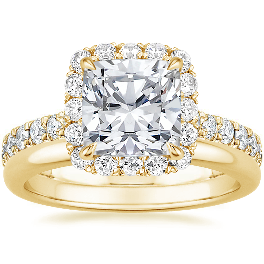 18K Yellow Gold Estelle Diamond Ring (3/4 ct. tw.) with 2mm Comfort Fit Wedding Ring