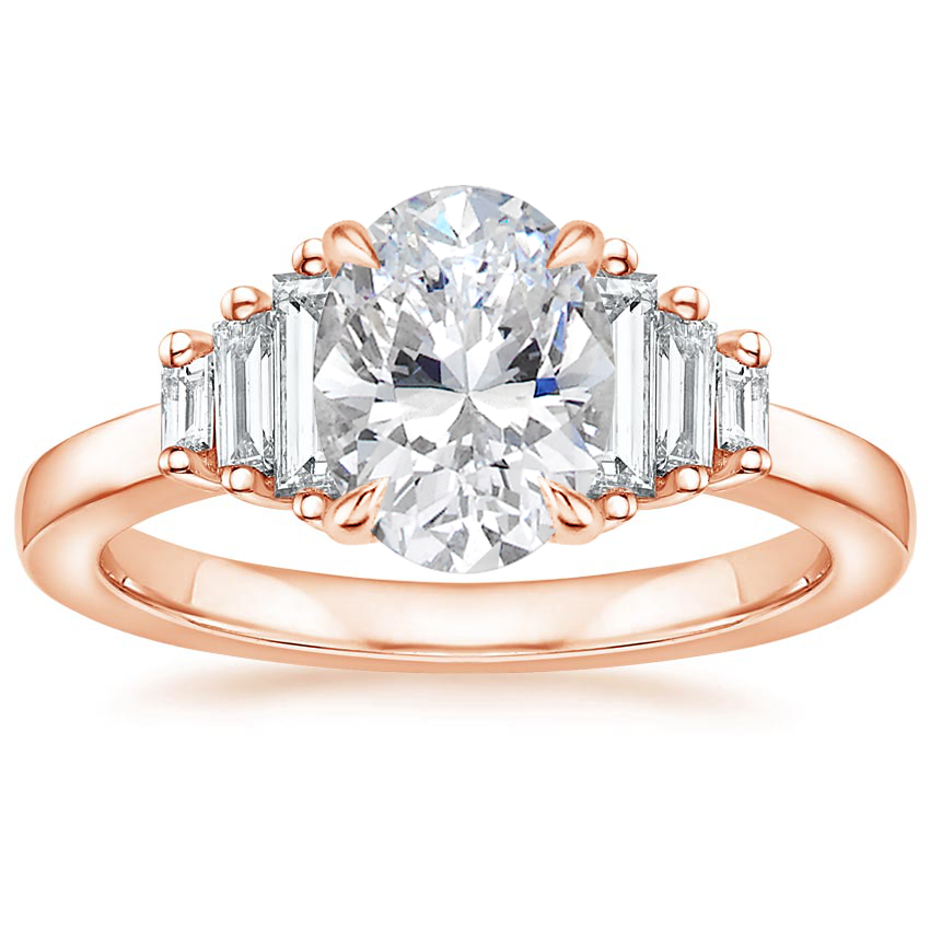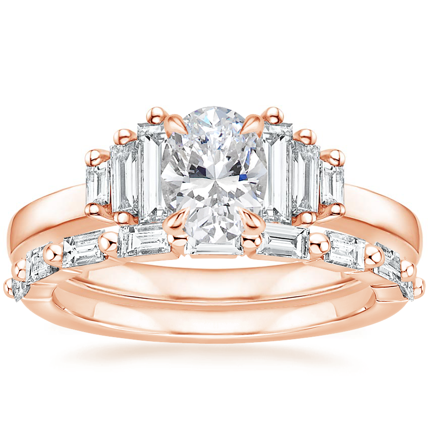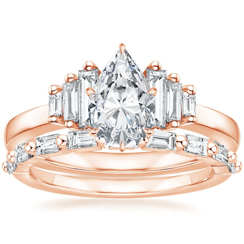 14K Rose Gold Faye Baguette Diamond Ring (1/2 ct. tw.) with Dominique Diamond Ring (1/3 ct. tw.)