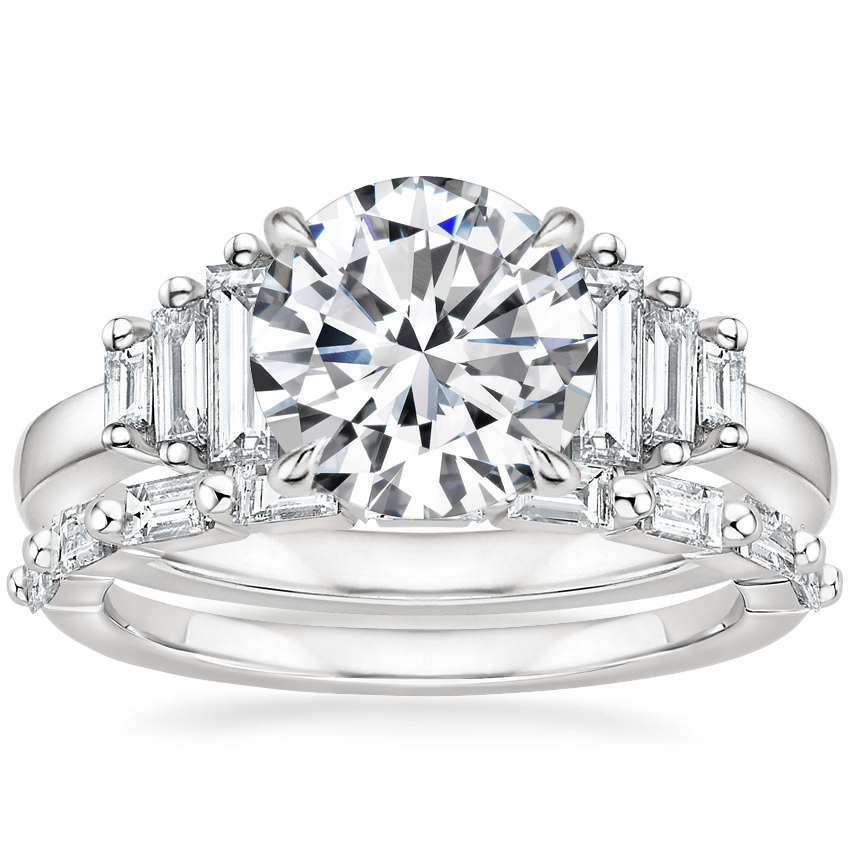 18K White Gold Faye Baguette Diamond Ring (1/2 ct. tw.) with Dominique Diamond Ring (1/3 ct. tw.)