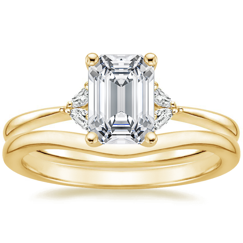 18K Yellow Gold Faye Diamond Ring with Petite Curved Wedding Ring