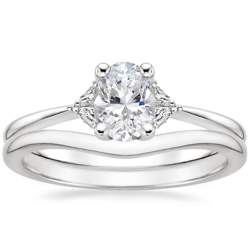 18K White Gold Faye Diamond Ring with Petite Curved Wedding Ring