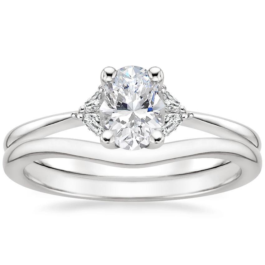 18K White Gold Faye Diamond Ring with Petite Curved Wedding Ring