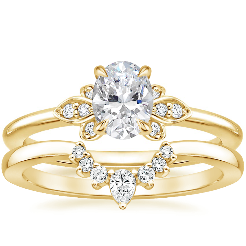 18K Yellow Gold Fiore Diamond Ring with Lunette Diamond Ring