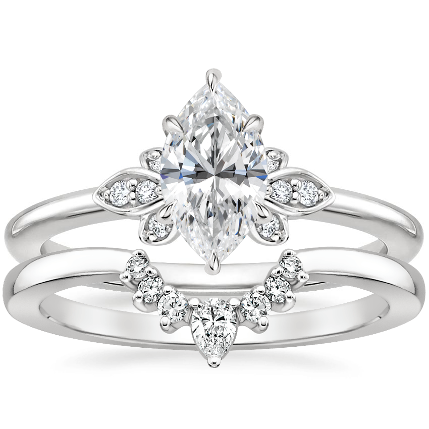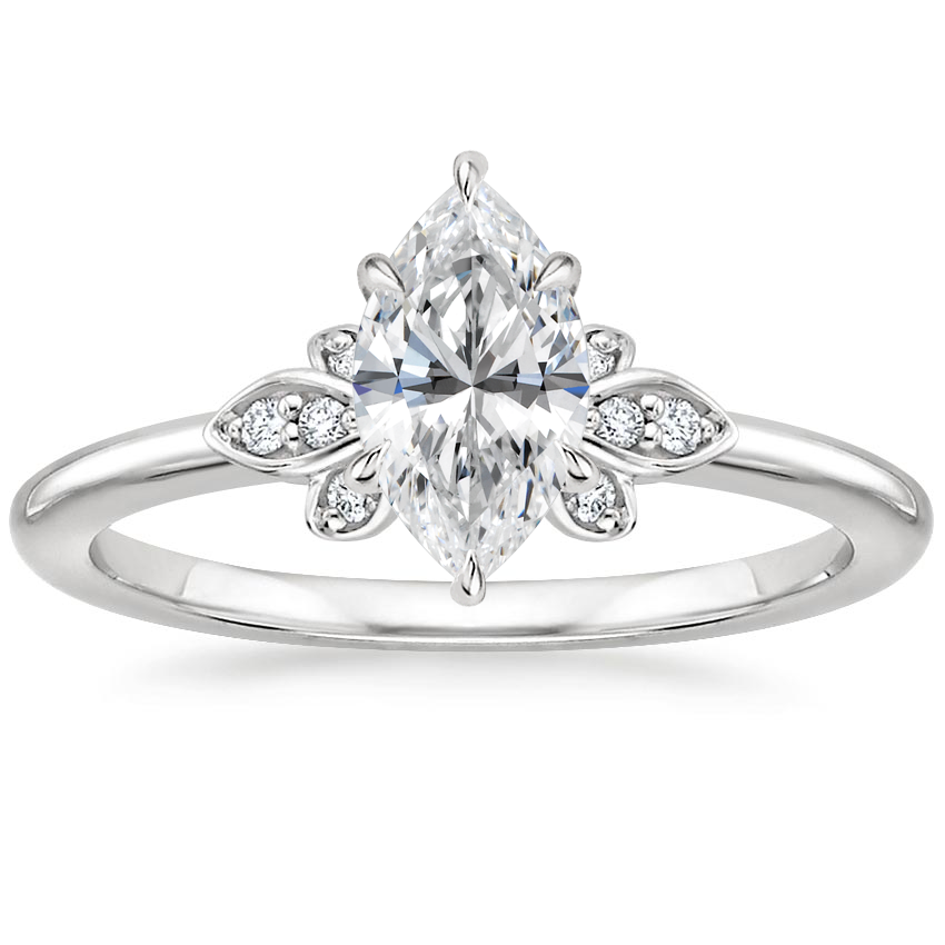 Platinum Fiore Lab Diamond Ring with Lunette Diamond Ring with 0.3 Carat Marquise Lab Grown Diamond