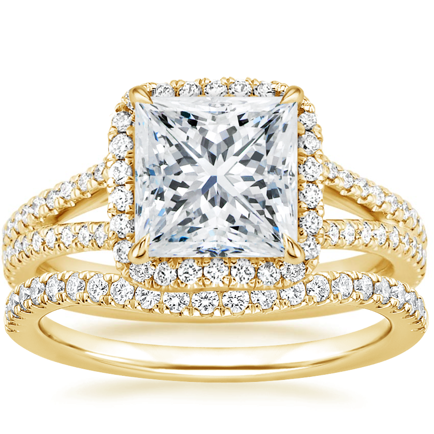18K Yellow Gold Fortuna Diamond Ring (1/2 ct. tw.) with Curved Ballad Diamond Ring (1/6 ct. tw.) with 1.5 Carat Princess Diamond